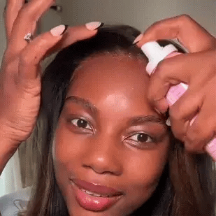 - Spray – verdeel een dunne, gelijkmatige laag langs de haarlijn.